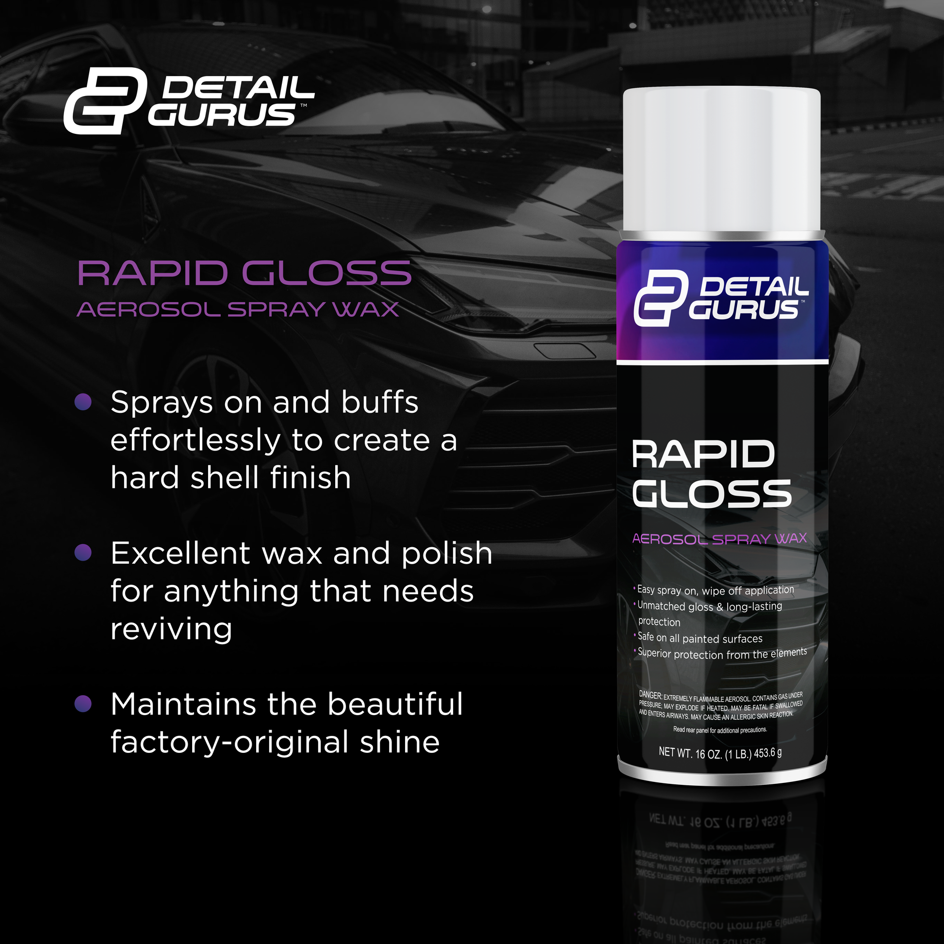 Detail Gurus Rapid Gloss Wax Spray – High Shine Car Wax & Sealant for Cars, Trucks, Boats, Motorcycles – Easy Spray-On Formula – Streak-Free Finish – 16 oz